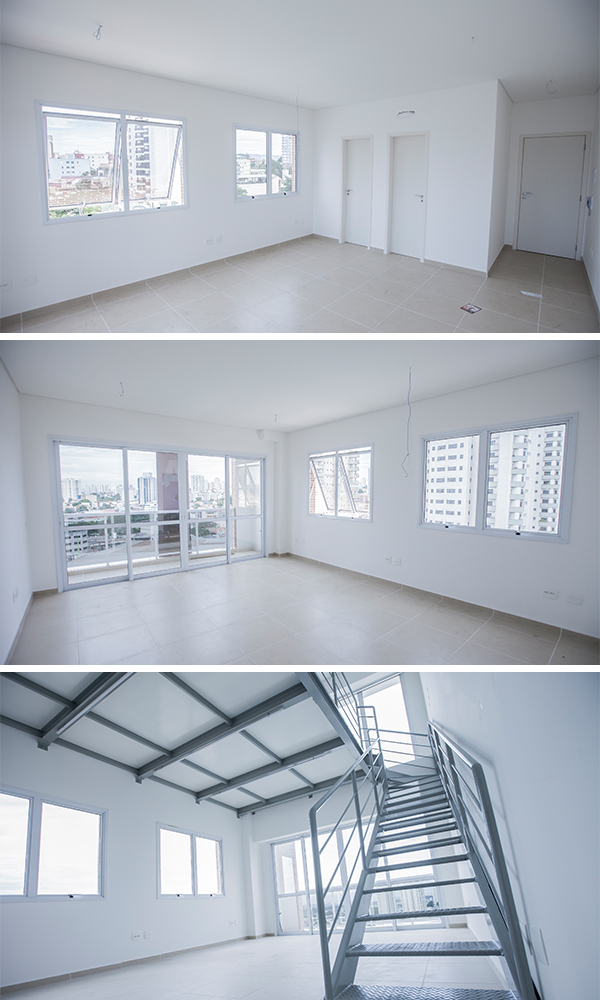 • Salas com piso de porcelanato de alta resistência (PEI5) imitando mármore