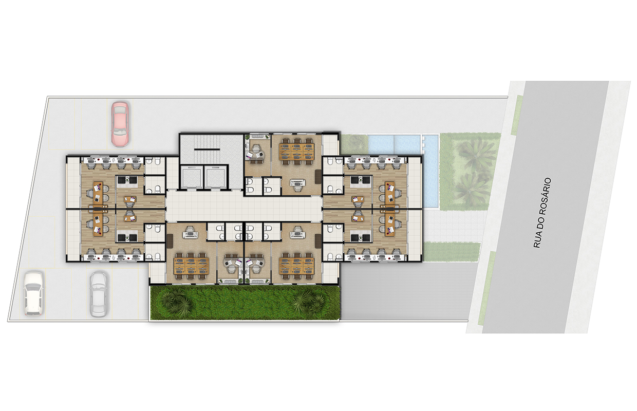 40m² │ 2 banheiros │ 1° - 8° andar │ Pé direito 2,70M │ 1 vaga garagem